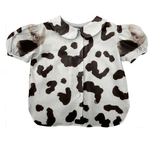 Sweet and simple button up kids blouse with peter pan collar and puff sleeves.