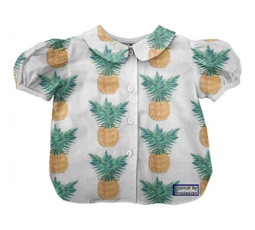 Sweet and simple button up kids blouse with peter pan collar and puff sleeves.