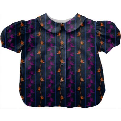 Sweet and simple button up kids blouse with peter pan collar and puff sleeves.