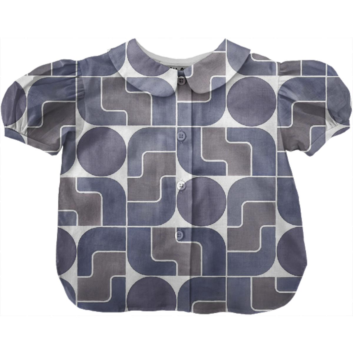 Sweet and simple button up kids blouse with peter pan collar and puff sleeves.