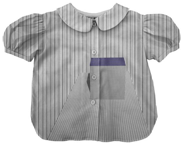 Sweet and simple button up kids blouse with peter pan collar and puff sleeves.