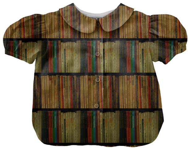 Sweet and simple button up kids blouse with peter pan collar and puff sleeves.
