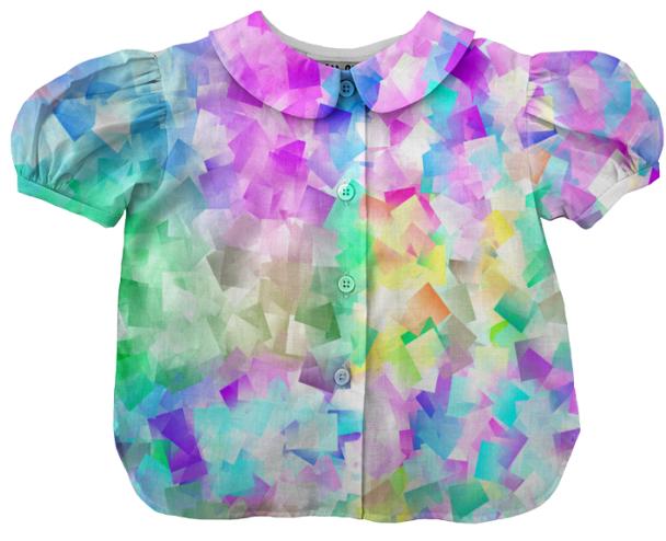 Sweet and simple button up kids blouse with peter pan collar and puff sleeves.