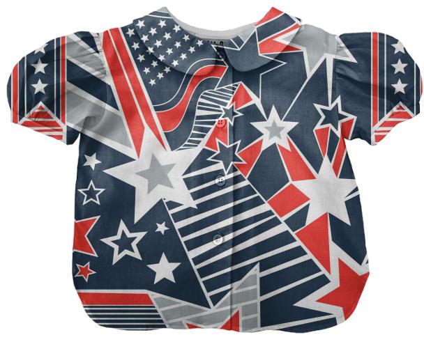 Sweet and simple button up kids blouse with peter pan collar and puff sleeves.