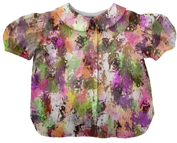 Sweet and simple button up kids blouse with peter pan collar and puff sleeves.