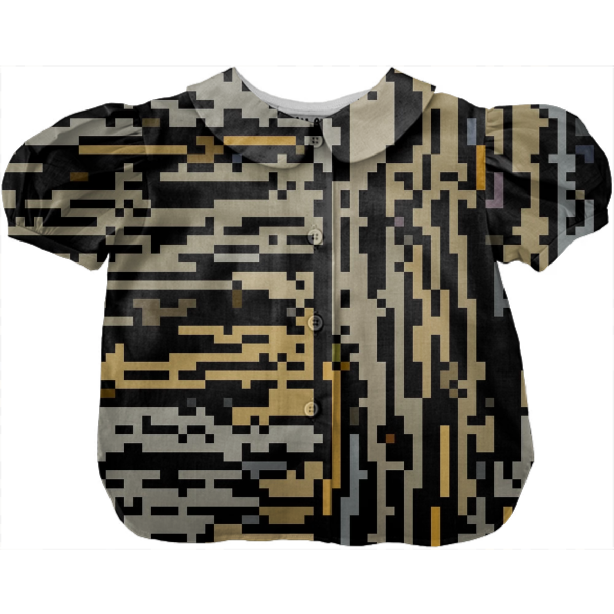Sweet and simple button up kids blouse with peter pan collar and puff sleeves.