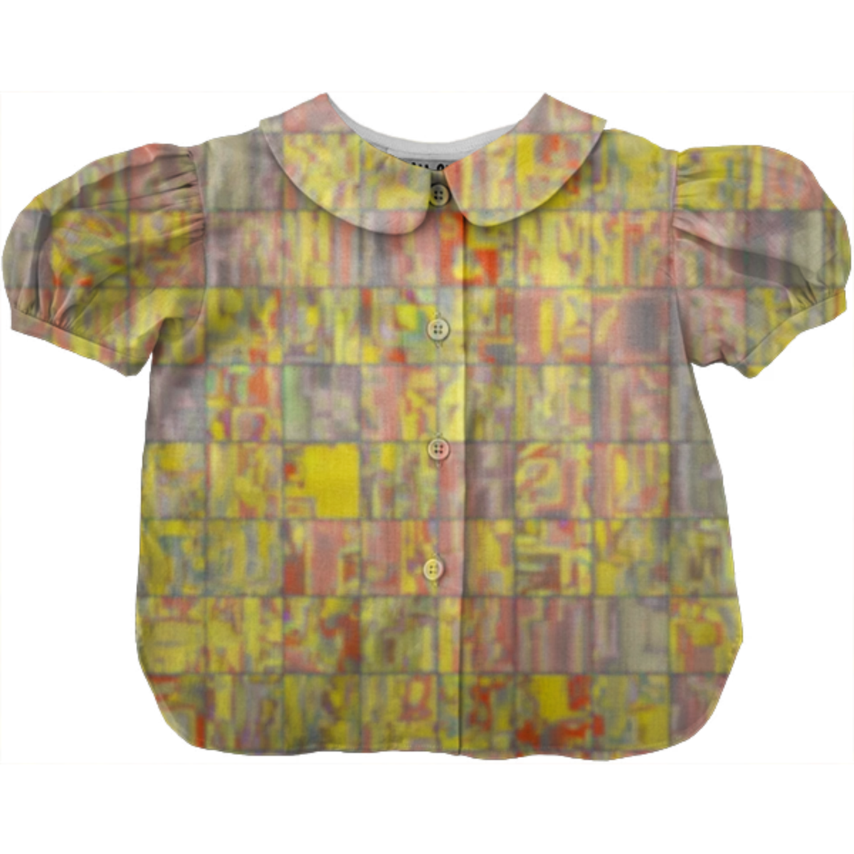 Sweet and simple button up kids blouse with peter pan collar and puff sleeves.