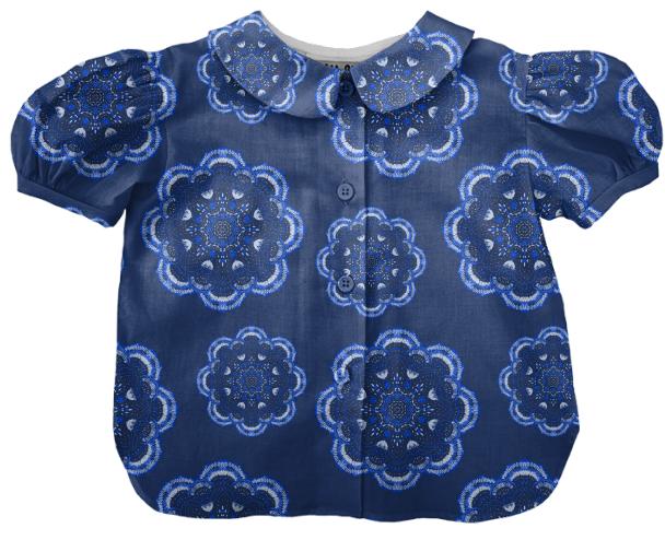 Sweet and simple button up kids blouse with peter pan collar and puff sleeves.