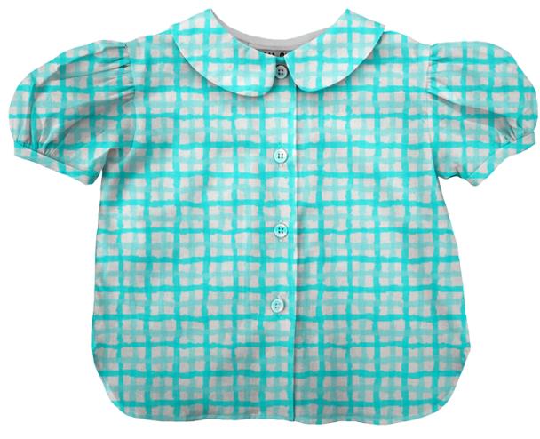 Sweet and simple button up kids blouse with peter pan collar and puff sleeves.