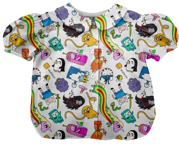 Sweet and simple button up kids blouse with peter pan collar and puff sleeves.