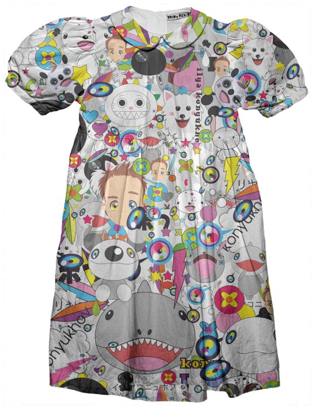 This kids party dress features a peter pan collar puff sleeves and empire waist with back bow tie. Easy to get on and off with center back plastic buttons.