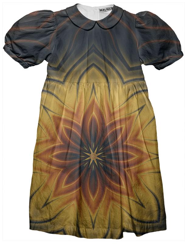 This kids party dress features a peter pan collar puff sleeves and empire waist with back bow tie. Easy to get on and off with center back plastic buttons.
