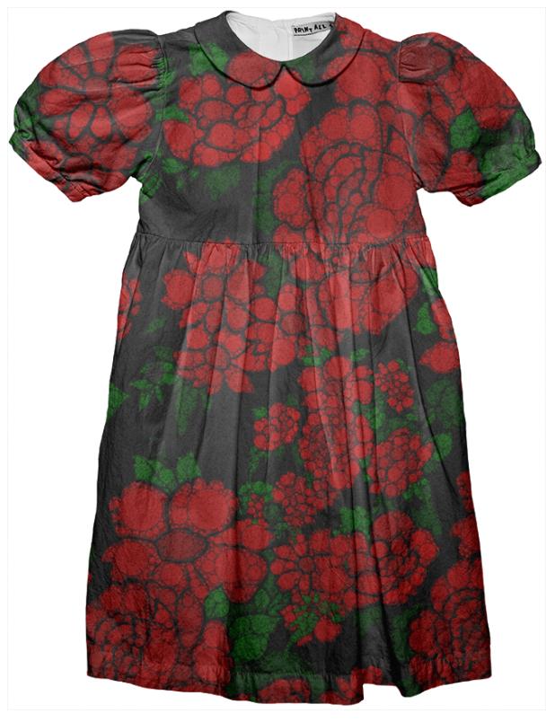 This kids party dress features a peter pan collar puff sleeves and empire waist with back bow tie. Easy to get on and off with center back plastic buttons.