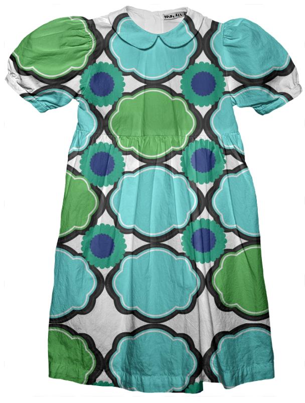 This kids party dress features a peter pan collar puff sleeves and empire waist with back bow tie. Easy to get on and off with center back plastic buttons.