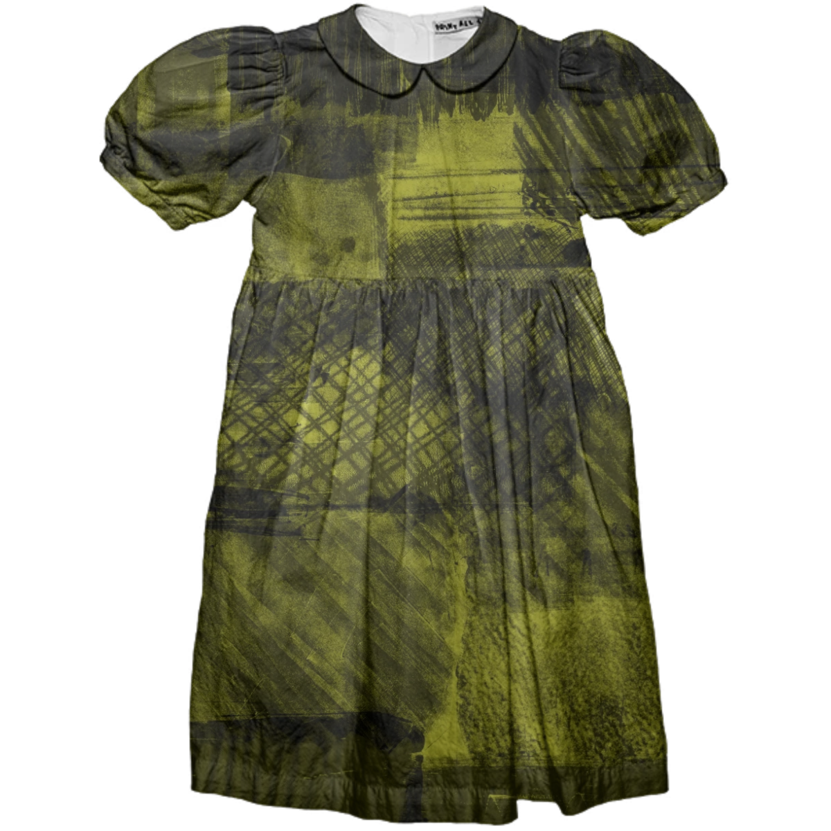 This kids party dress features a peter pan collar puff sleeves and empire waist with back bow tie. Easy to get on and off with center back plastic buttons.