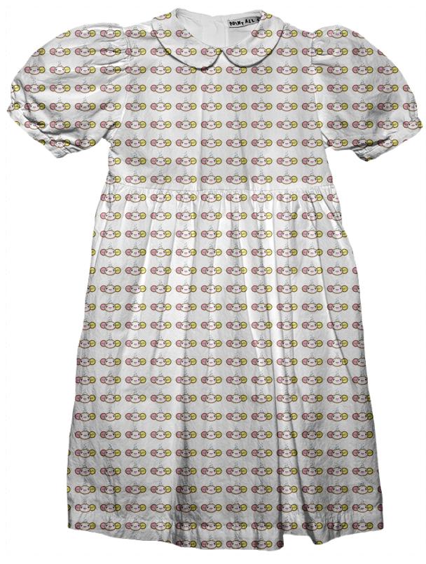 This kids party dress features a peter pan collar puff sleeves and empire waist with back bow tie. Easy to get on and off with center back plastic buttons.