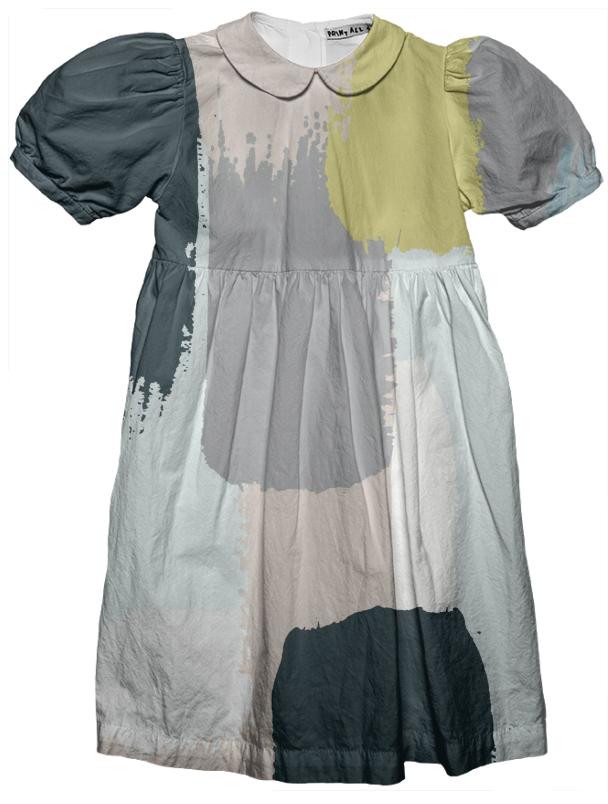 This kids party dress features a peter pan collar puff sleeves and empire waist with back bow tie. Easy to get on and off with center back plastic buttons.