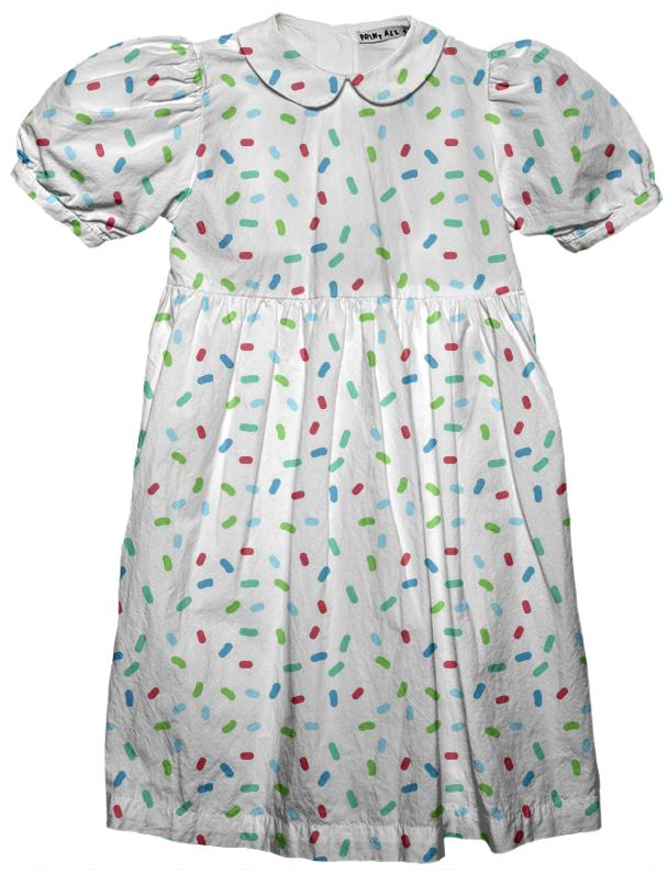 This kids party dress features a peter pan collar puff sleeves and empire waist with back bow tie. Easy to get on and off with center back plastic buttons.