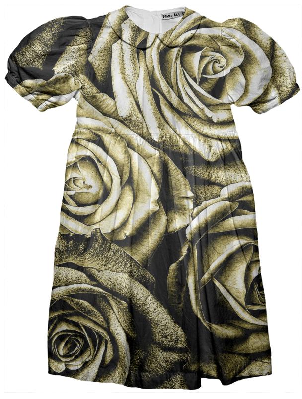 This kids party dress features a peter pan collar puff sleeves and empire waist with back bow tie. Easy to get on and off with center back plastic buttons.