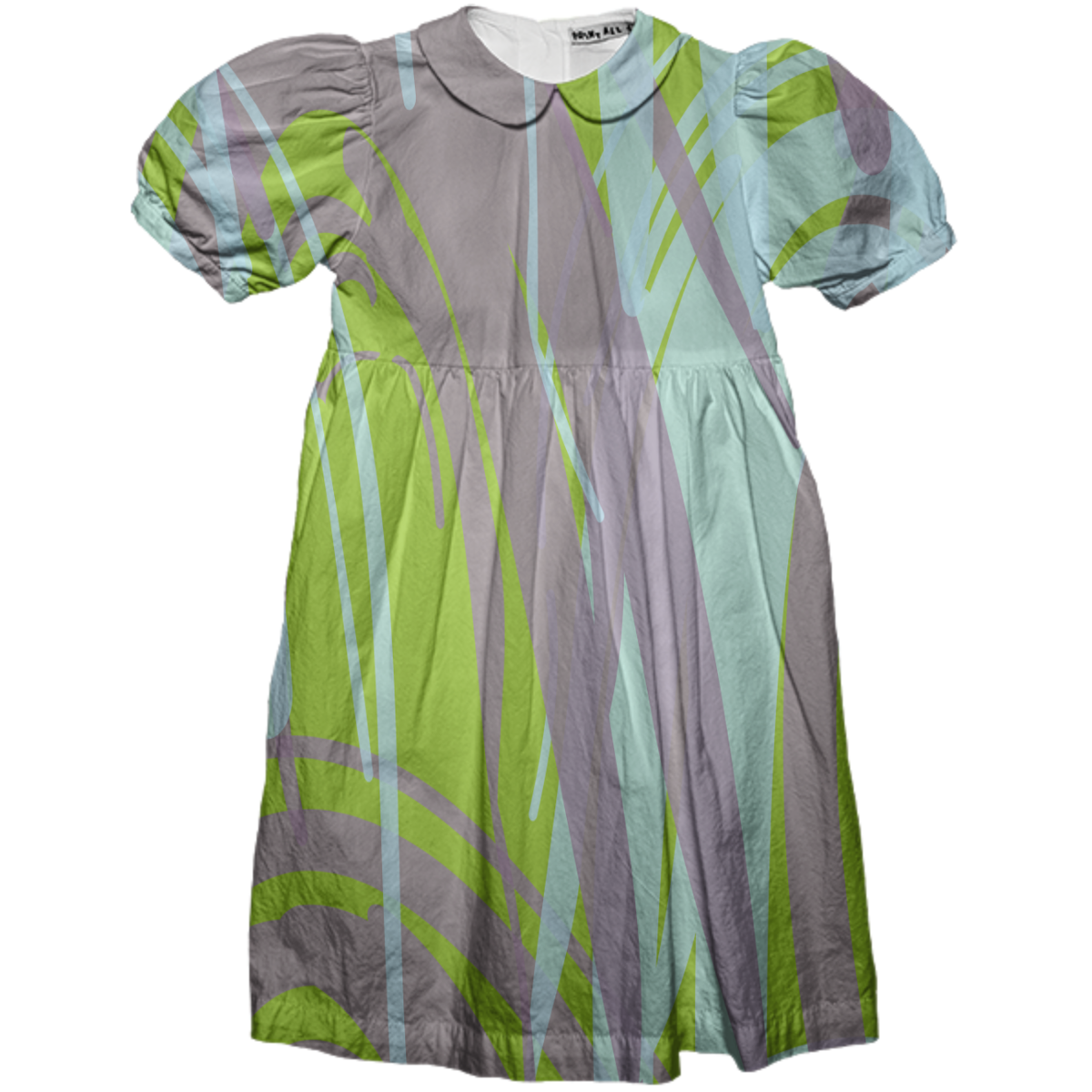 This kids party dress features a peter pan collar puff sleeves and empire waist with back bow tie. Easy to get on and off with center back plastic buttons.