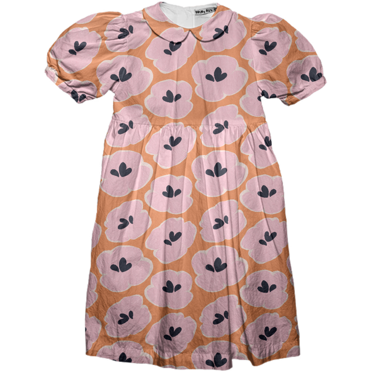 This kids party dress features a peter pan collar puff sleeves and empire waist with back bow tie. Easy to get on and off with center back plastic buttons.