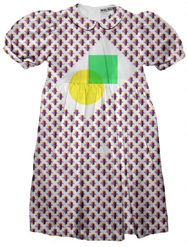 This kids party dress features a peter pan collar puff sleeves and empire waist with back bow tie. Easy to get on and off with center back plastic buttons.