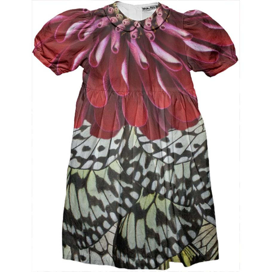 This kids party dress features a peter pan collar puff sleeves and empire waist with back bow tie. Easy to get on and off with center back plastic buttons.
