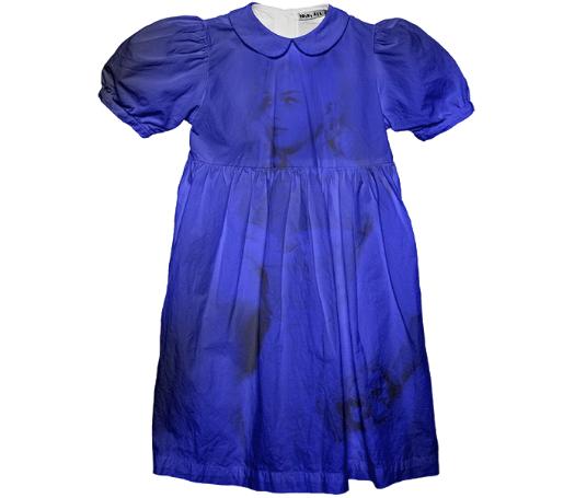 This kids party dress features a peter pan collar puff sleeves and empire waist with back bow tie. Easy to get on and off with center back plastic buttons.