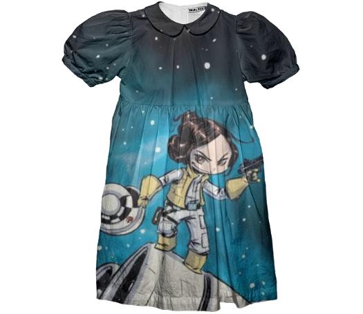 This kids party dress features a peter pan collar puff sleeves and empire waist with back bow tie. Easy to get on and off with center back plastic buttons.