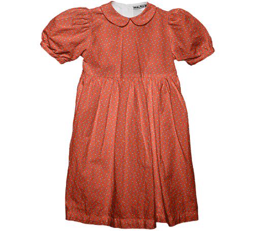 This kids party dress features a peter pan collar puff sleeves and empire waist with back bow tie. Easy to get on and off with center back plastic buttons.