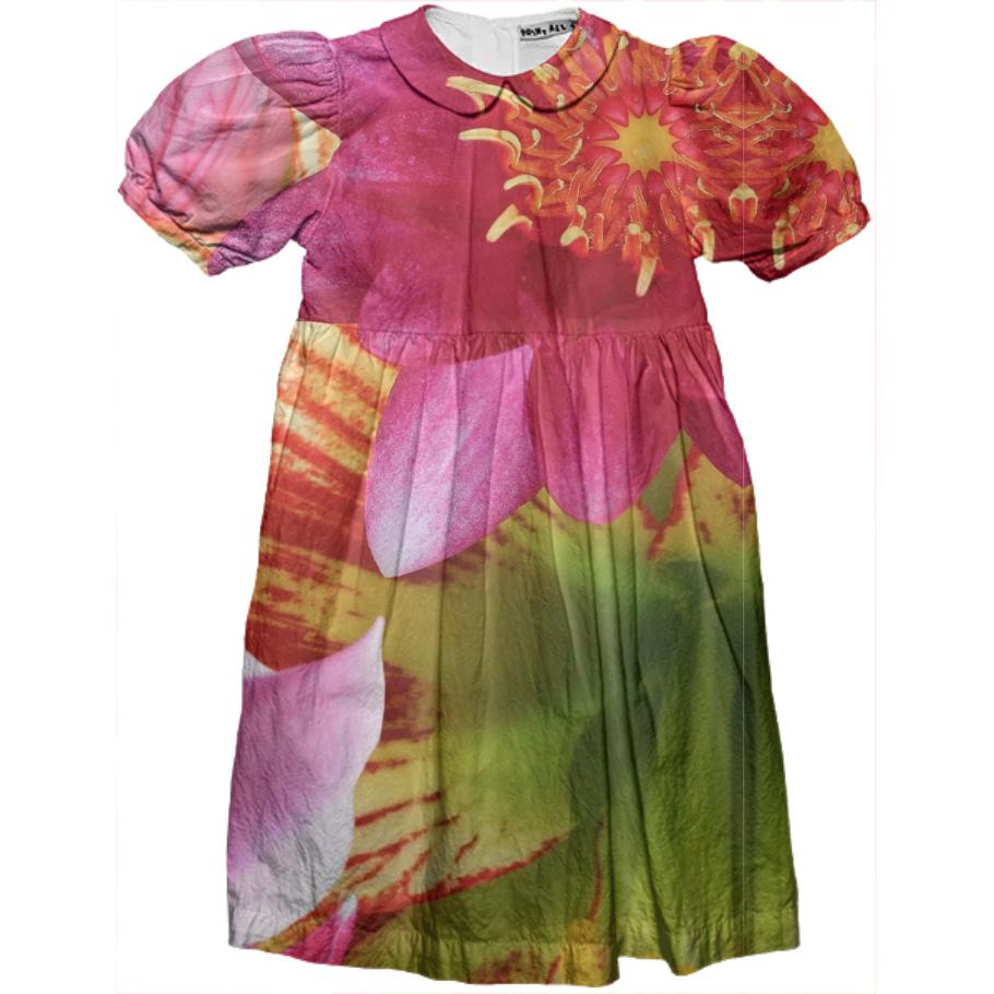 This kids party dress features a peter pan collar puff sleeves and empire waist with back bow tie. Easy to get on and off with center back plastic buttons.