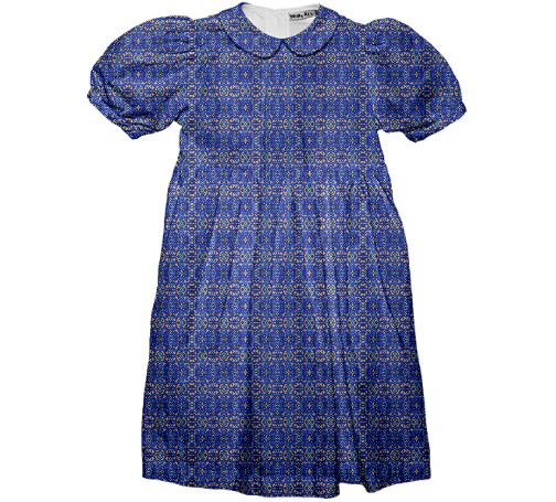 This kids party dress features a peter pan collar puff sleeves and empire waist with back bow tie. Easy to get on and off with center back plastic buttons.
