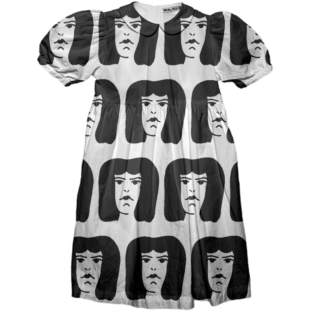 This kids party dress features a peter pan collar puff sleeves and empire waist with back bow tie. Easy to get on and off with center back plastic buttons.