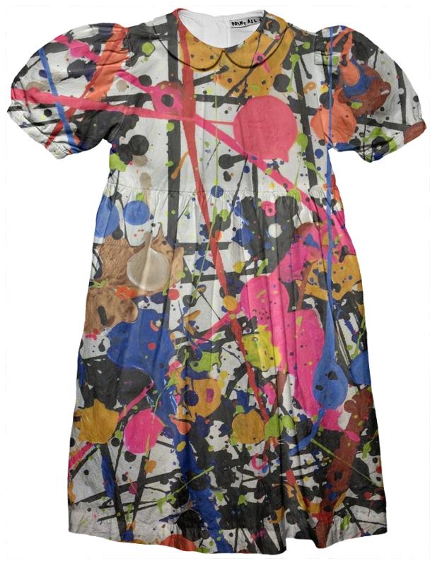 This kids party dress features a peter pan collar puff sleeves and empire waist with back bow tie. Easy to get on and off with center back plastic buttons.