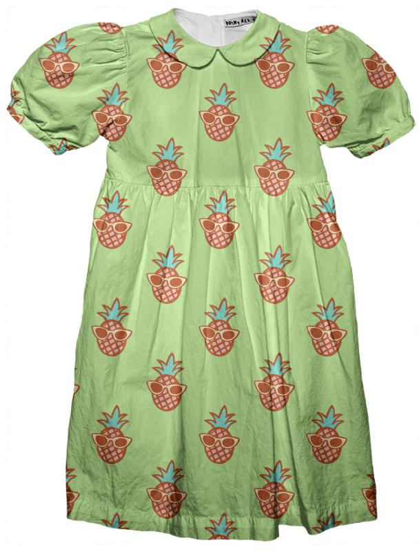 This kids party dress features a peter pan collar puff sleeves and empire waist with back bow tie. Easy to get on and off with center back plastic buttons.