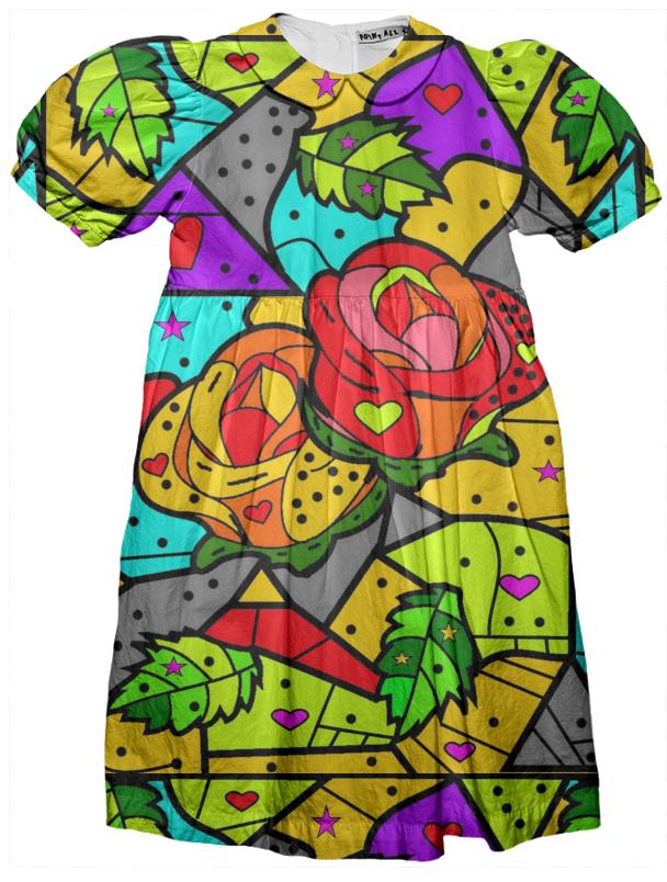 This kids party dress features a peter pan collar puff sleeves and empire waist with back bow tie. Easy to get on and off with center back plastic buttons.