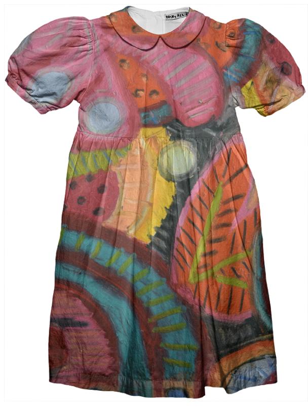 This kids party dress features a peter pan collar puff sleeves and empire waist with back bow tie. Easy to get on and off with center back plastic buttons.