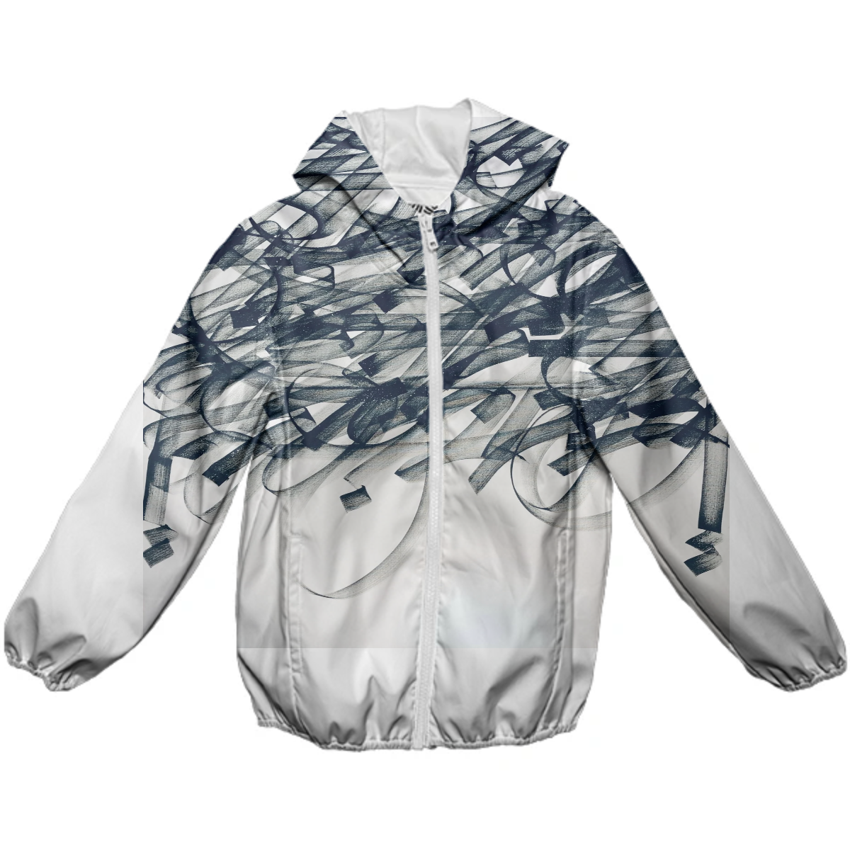 Kids rain jacket with a hood elastic sleeve cuffs & hem to keep out the rain and side pockets.