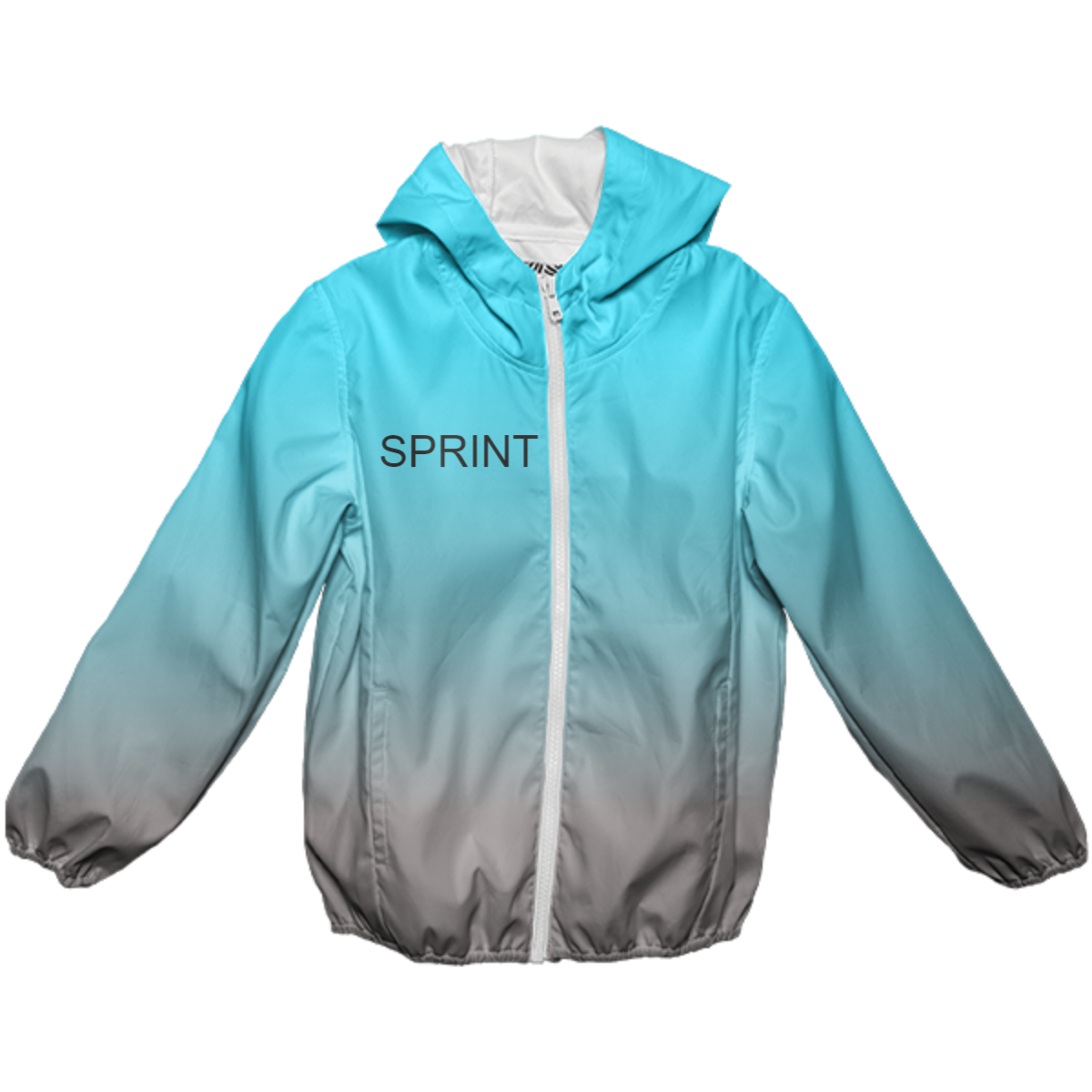 Kids rain jacket with a hood elastic sleeve cuffs & hem to keep out the rain and side pockets.