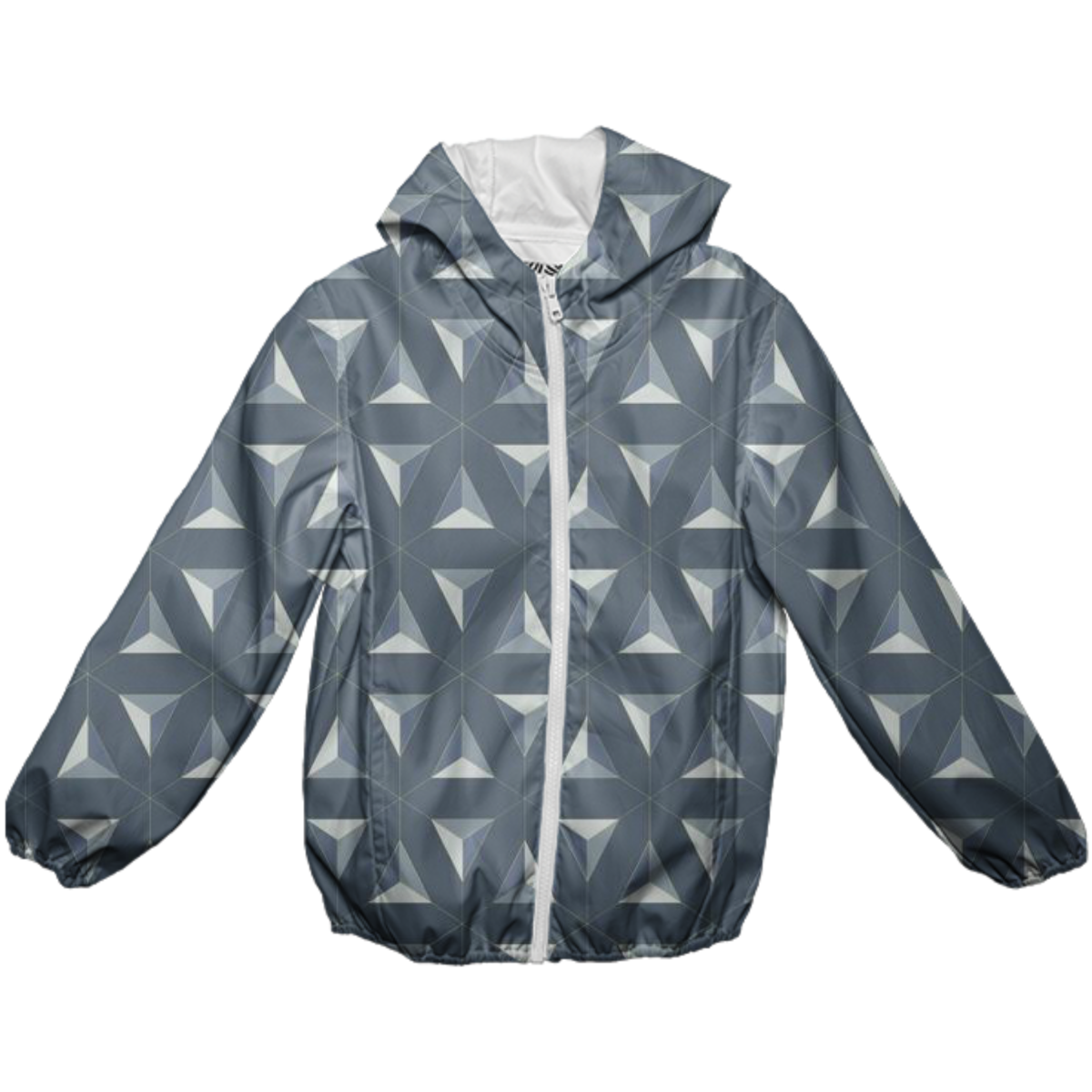 Kids rain jacket with a hood elastic sleeve cuffs & hem to keep out the rain and side pockets.