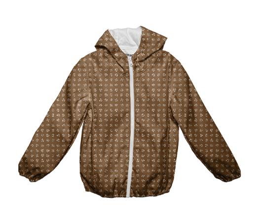 Kids rain jacket with a hood elastic sleeve cuffs & hem to keep out the rain and side pockets.