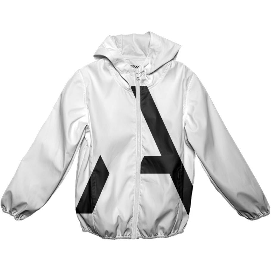 Kids rain jacket with a hood elastic sleeve cuffs & hem to keep out the rain and side pockets.