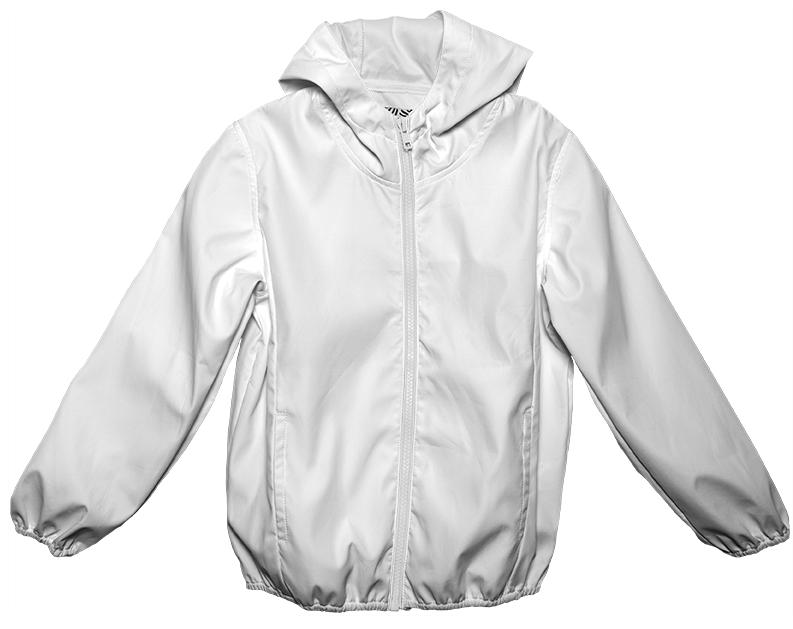 Kids rain jacket with a hood elastic sleeve cuffs & hem to keep out the rain and side pockets.