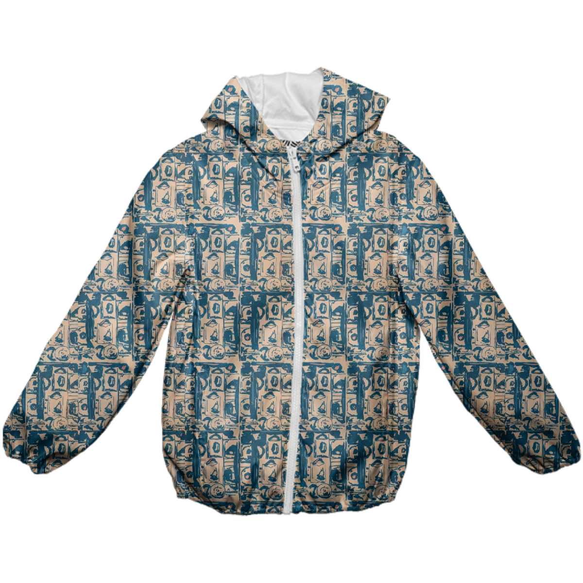 Kids rain jacket with a hood elastic sleeve cuffs & hem to keep out the rain and side pockets.