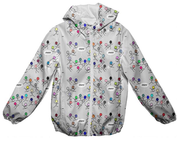 Kids rain jacket with a hood elastic sleeve cuffs & hem to keep out the rain and side pockets.