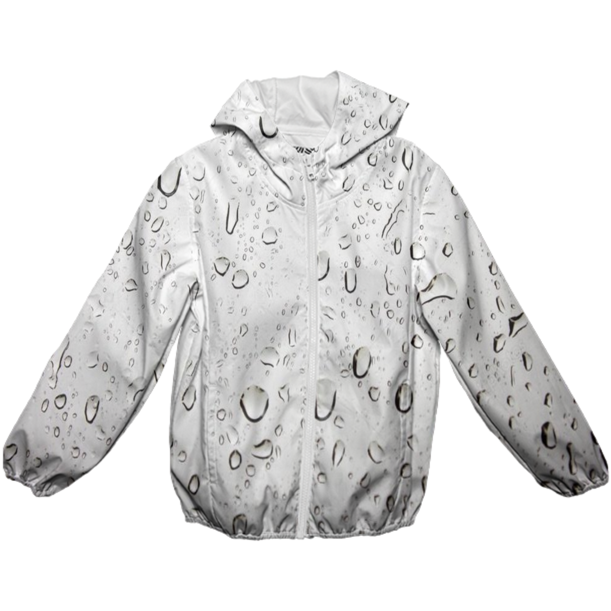 Kids rain jacket with a hood elastic sleeve cuffs & hem to keep out the rain and side pockets.