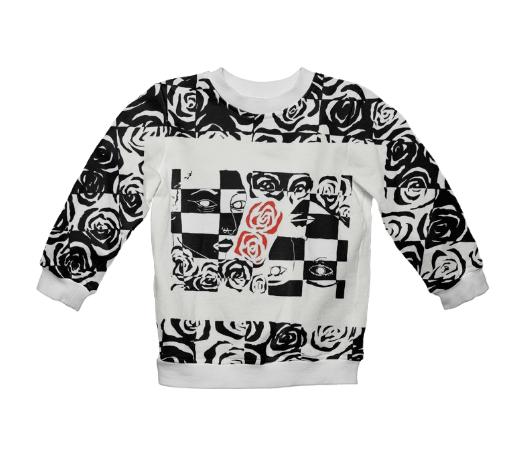 Basic crew neck sweatshirt with white or black cuffs neck and hem ribbing.