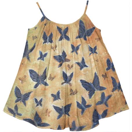 The kids tent dress features thin straps and a voluminous cut making it easy to wear for years.