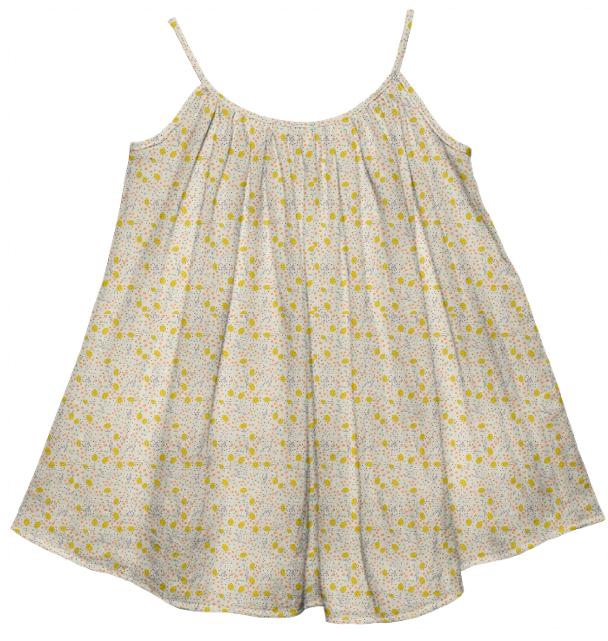 The kids tent dress features thin straps and a voluminous cut making it easy to wear for years.