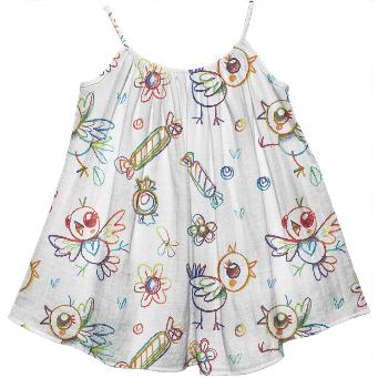 The kids tent dress features thin straps and a voluminous cut making it easy to wear for years.